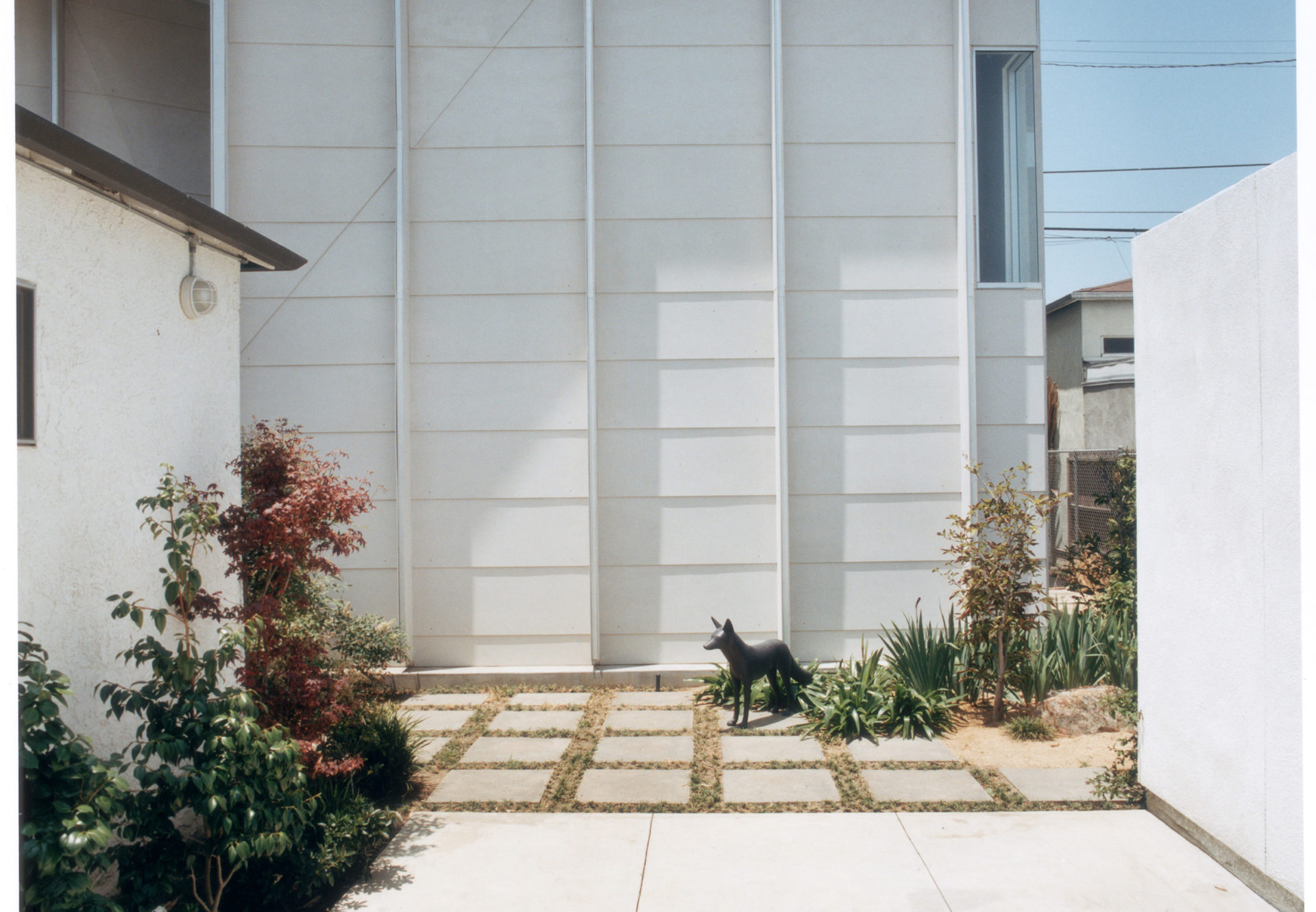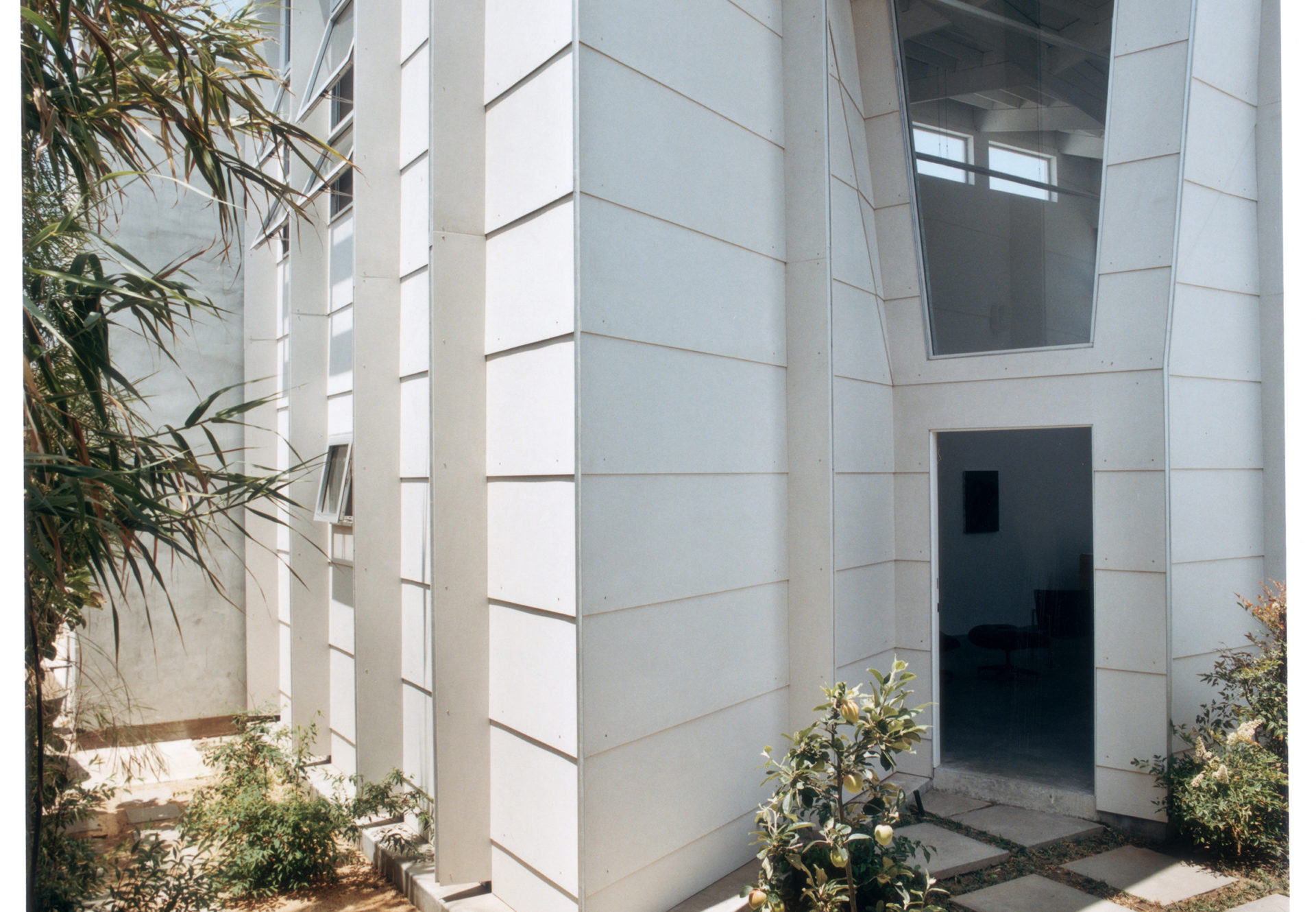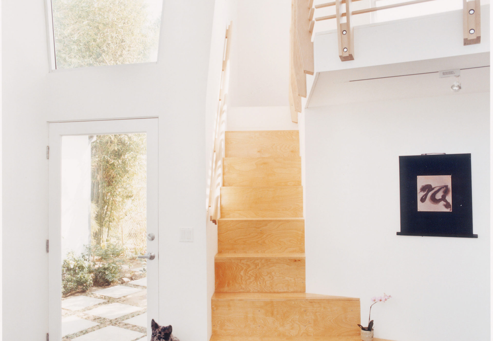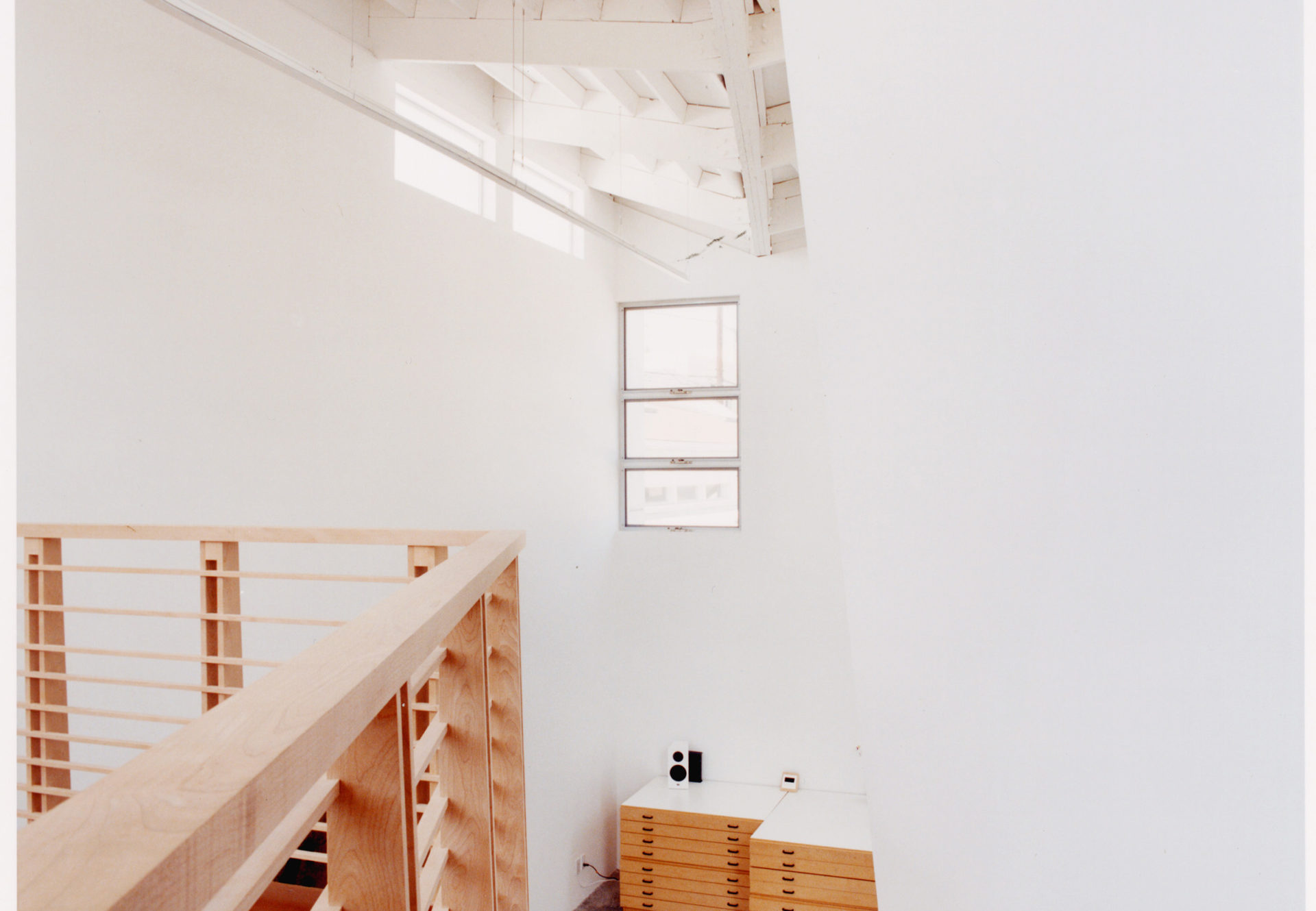 This 1,200 square foot studio for a painter based in West Los Angeles provides additional workspace illuminated by filtered, soft light. The artist, whose works require long drying periods under indirect sunlight, wanted to have a tall, light-filled space to finish and display his paintings. It was important that the new studio not only share the basic display functionality of an art gallery, but also to be able to recreate the light characteristics of where his work would eventually hang.