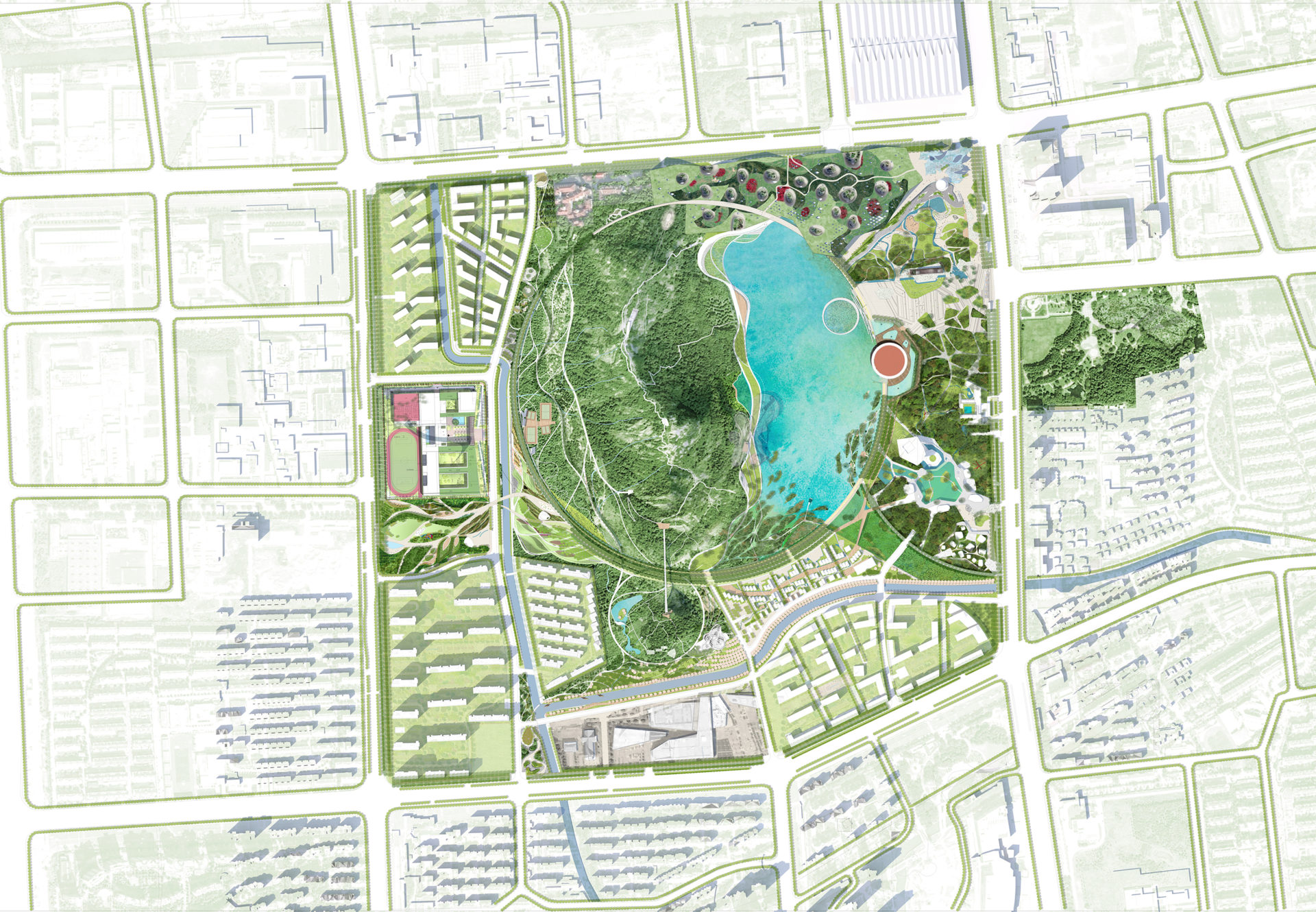 Anchoring the northern edge of Shishan Park, the Suzhou Museum of Science and Technology is bound by Jinshan Road, Lion Mountain, a newly reconstructed lake, and the transit plaza—an active landscape setting at the intersection of city and nature.