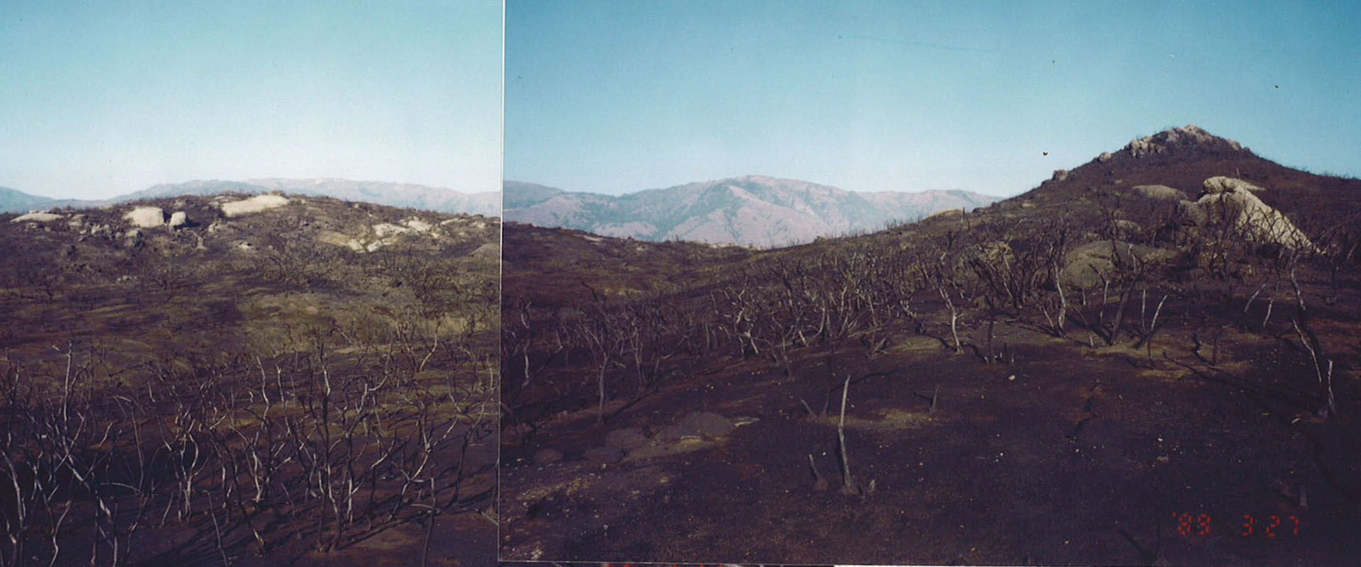 The client, a second-generation citrus rancher, established the grove in 1975 to replace a ranch that the family had operated for 65 years in Orange County, CA. Increased urbanization and the development of tract housing surrounding the original family grove forced the relocation to a more remote area. The site was selected for its western orientation and relatively steep topography to help prevent frost damage during the infrequent freezing weather that strikes the area. The eastern edge of the site adjoins the Rincon Indian Reservation and is covered by scrub vegetation that is uninterrupted for miles. This landscape, the nexus of cultivated and wild terrain, was the source of the fire that burned the original ranch in 1996.