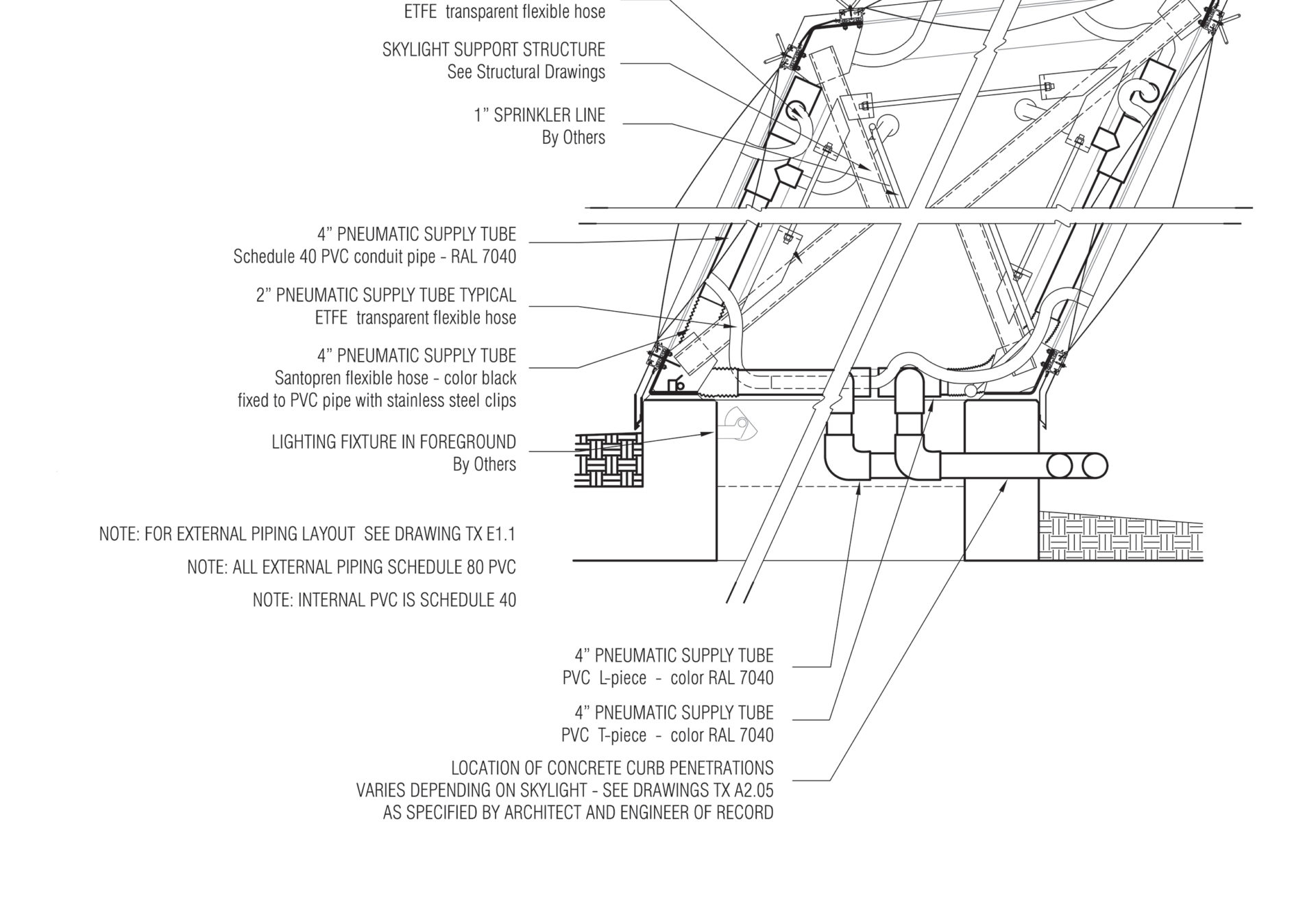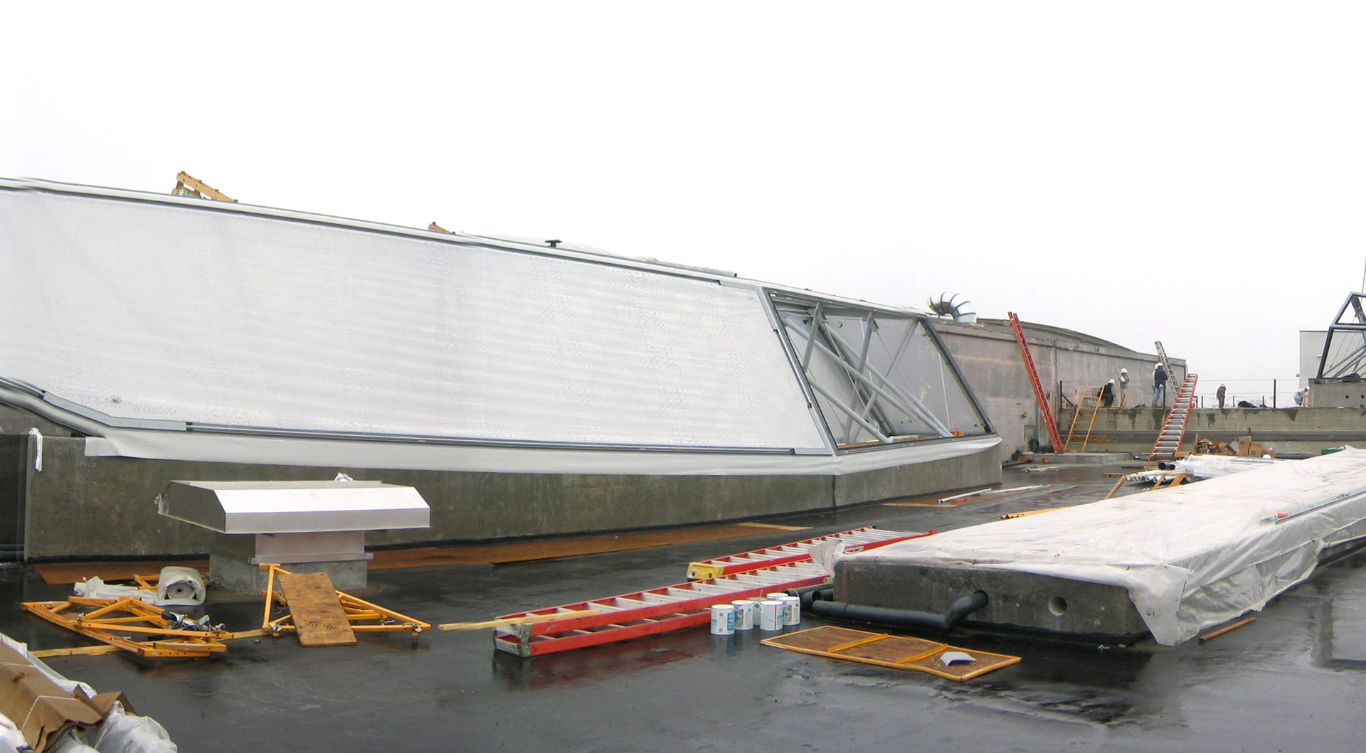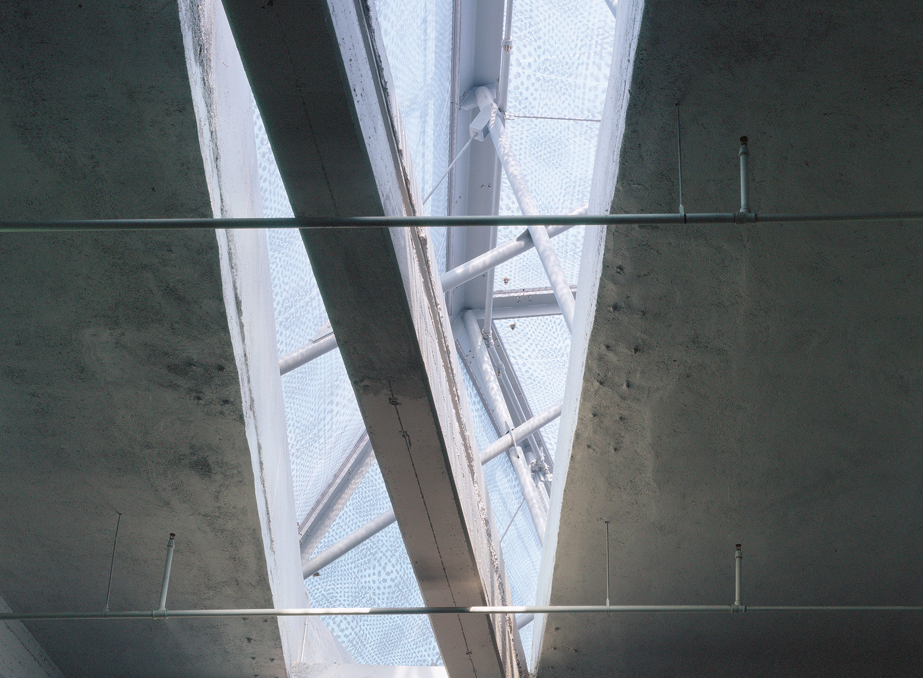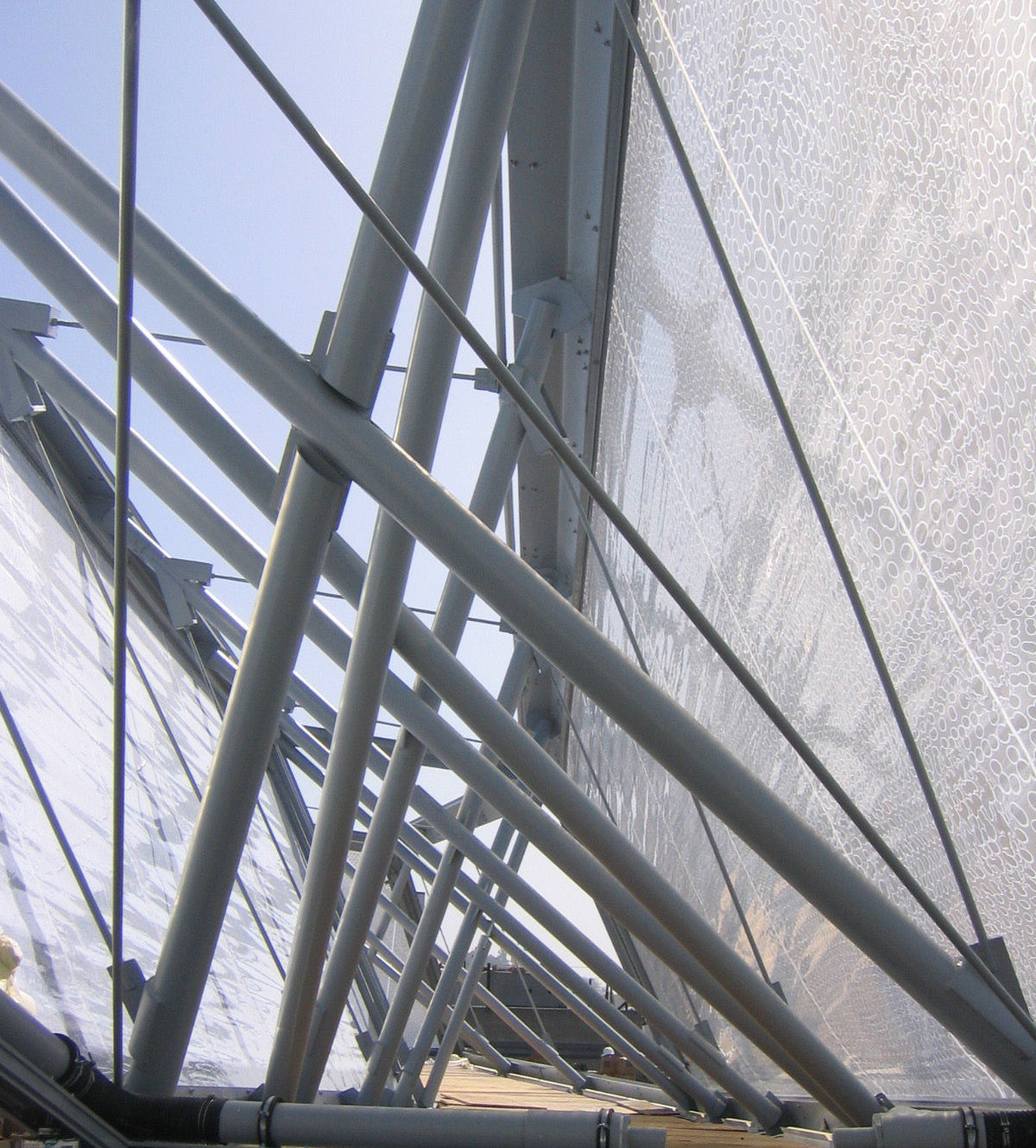 Designed for the ArtCenter College of Design South Campus, the skylight system is built of translucent ETFE films stretched on a custom-designed structural frame. Three thin printed layers of Foiltec (a Teflon-coated polymer) comprise the pillows within the structural frame. Via compressors these layers are inflated or deflated to adjust the amount of natural light and heat entering the building.