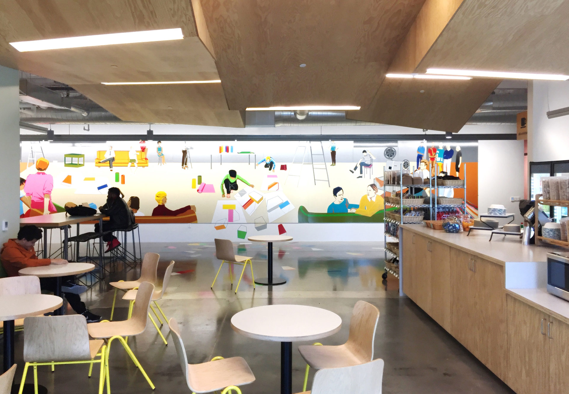 kdA is working with a leading technology company on a number of new office spaces in Menlo Park, Fremont, Los Angeles, and New York. Designed to accommodate a variety of departments, the modern design features a balance of open desking, project-based rooms, breakout rooms, and is punctuated by a wide range of food service amenities. The Menlo Park locations included over 160,000 sf of renovated spaces and 1,082 desks. kdA developed high end public spaces with custom furniture, murals, and cabinetry.