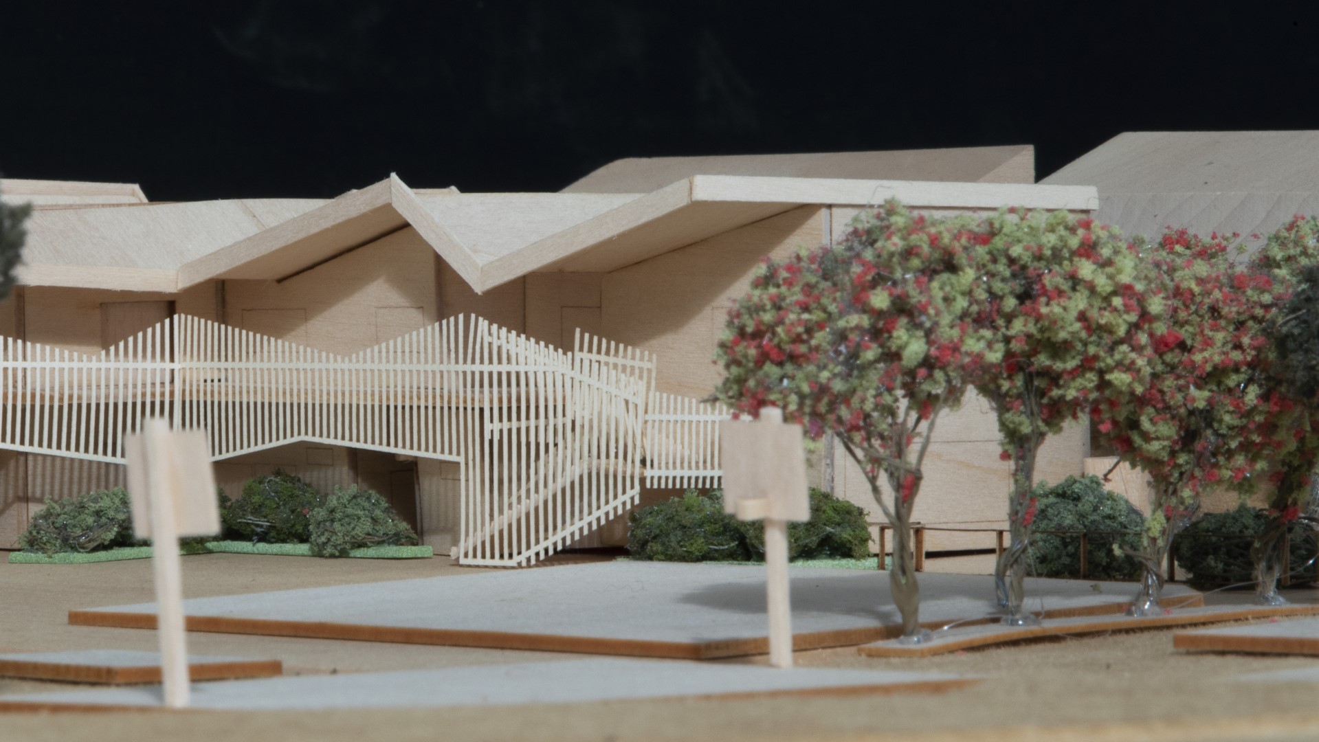 The brief challenged the design team to wonder, “what kind of building belongs in a playground”? The team wanted to avoid condescending stereotypes of “playfulness” and instead design a building suitable as a backdrop for play. Exterior circulation is focused on the playground side of the building, extending the play space to the second floor. Children at the school call the new building Pikachu.