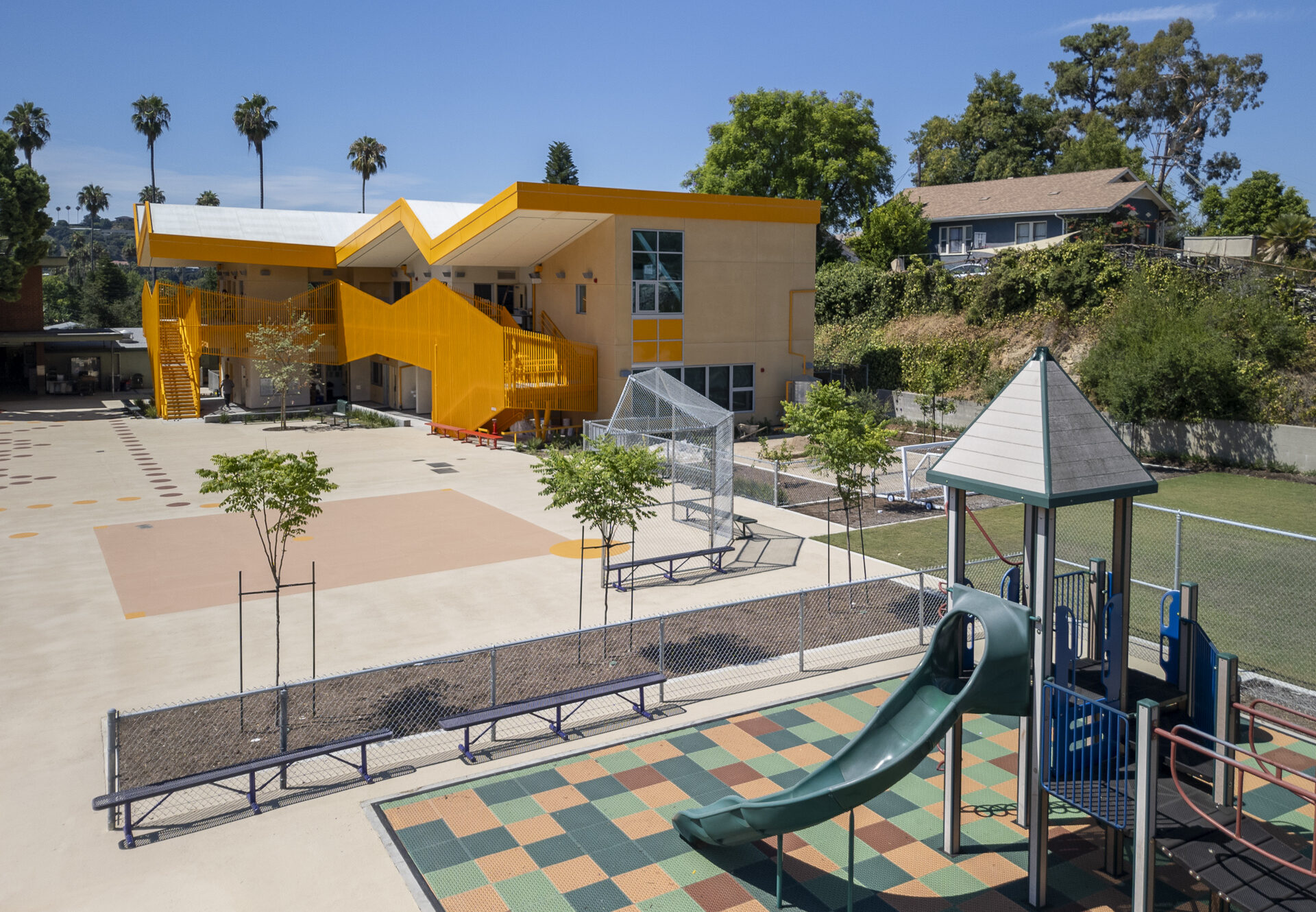 Dahlia Heights Elementary School is part of a bond program to construct permanent classrooms in order to remove modular classrooms -“portables”- to increase play space at constrained LA Unified School District sites.