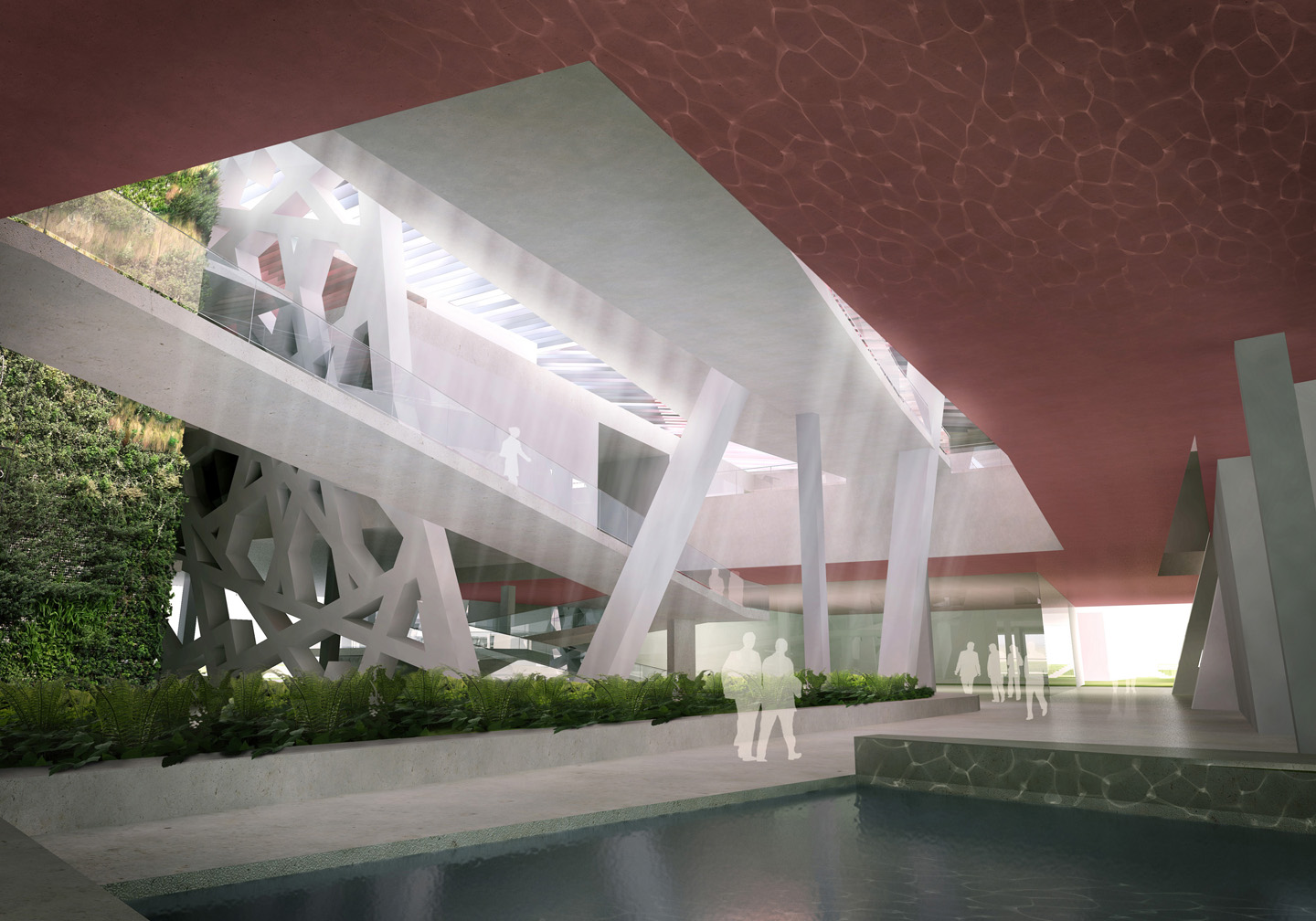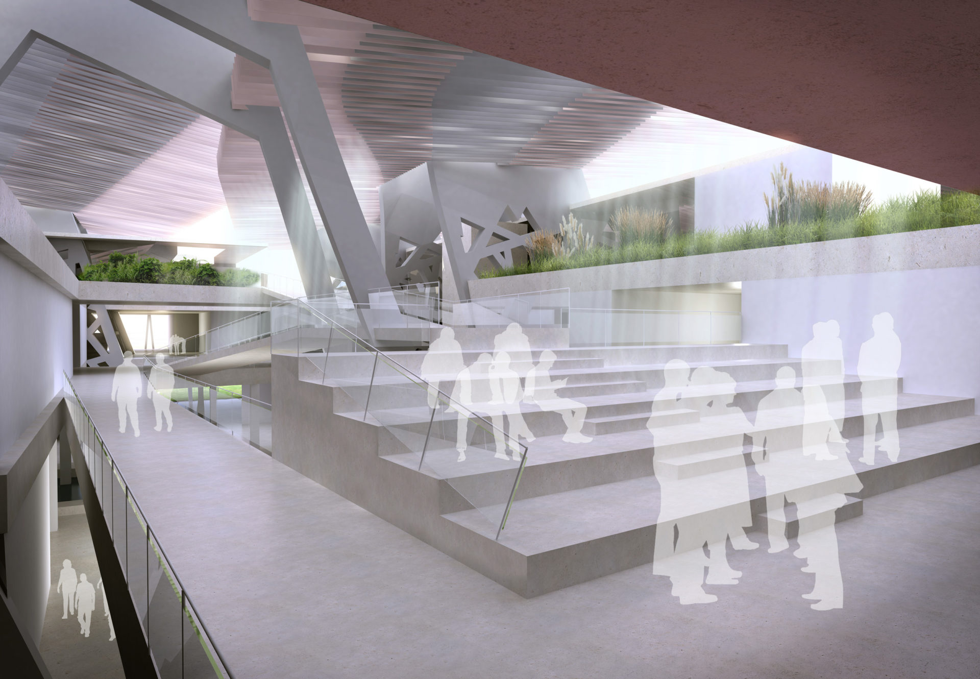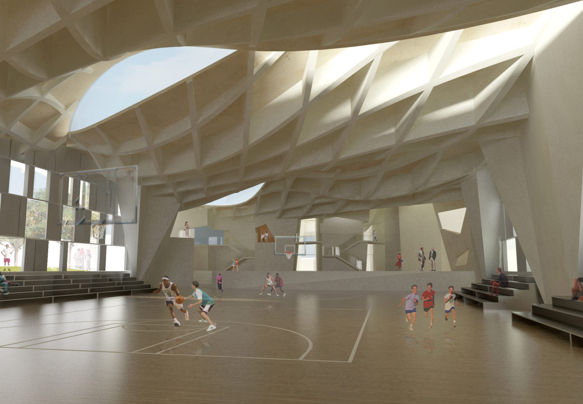 The five precincts are connected by the continuous and interlocking landscape. The palm grove in the residential precinct gives way to the acacia woodland that stretches across the campus to the central square, while a wild undulating canopy of trees blends into the woodland floats above the early years school. In both the junior school and senior school the landscape becomes more organized and quiet in scale, reflecting the College’s curriculum. The performing arts and recreation precincts are the gateway from the College to the community and the world, allowing the world to be absorbed by the College.