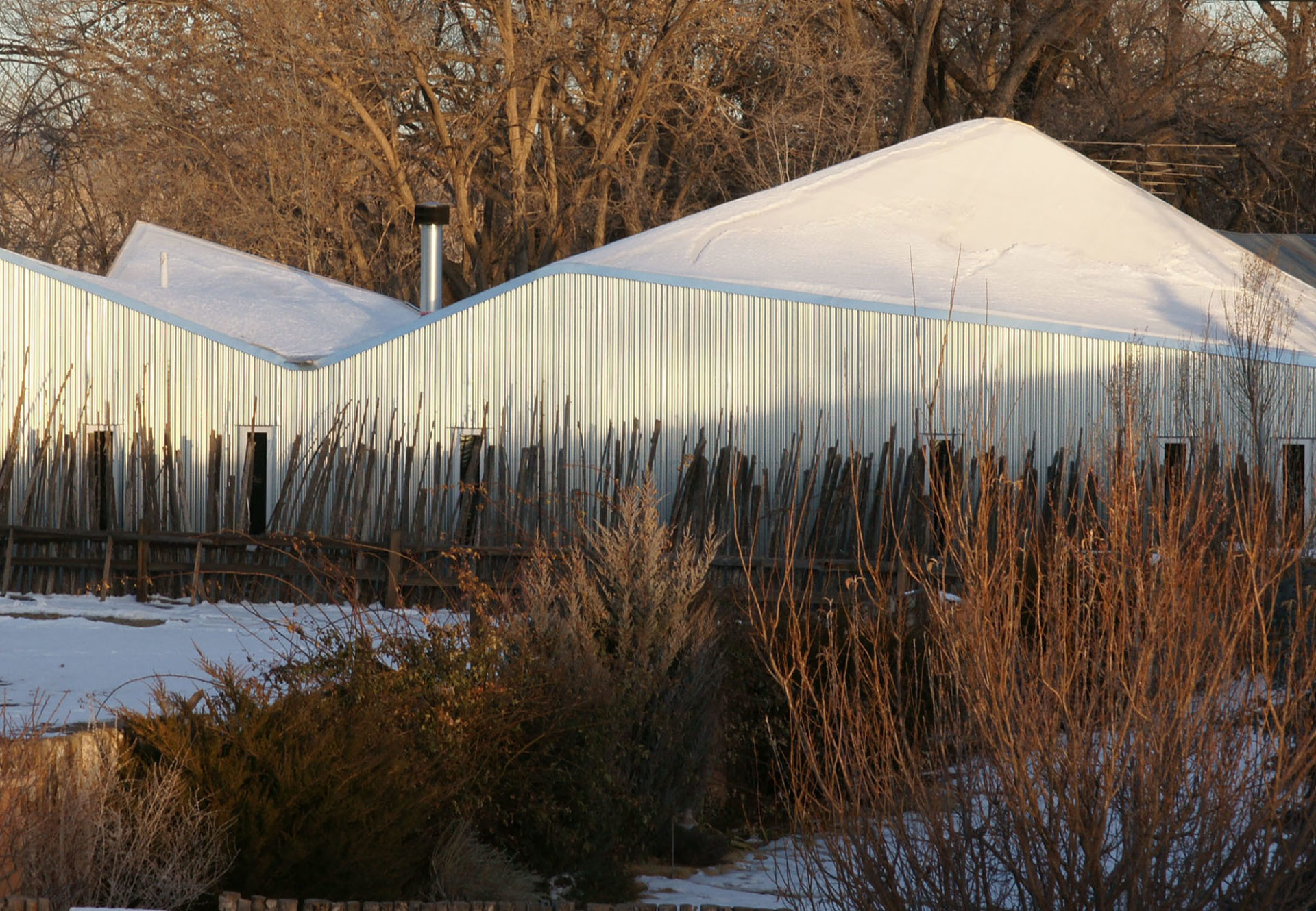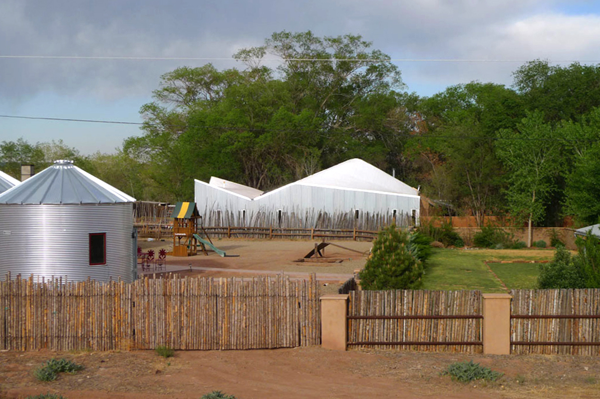 The project is a 1000SF studio for a photographer, the owner of a century old house in rural New Mexico. The soft geometry of the interior of the existing adobe house was extended to the addition as undulating wall profiles that enclose the studio space. The roof is a continuously varying curved surface that connects the exterior wall profiles.