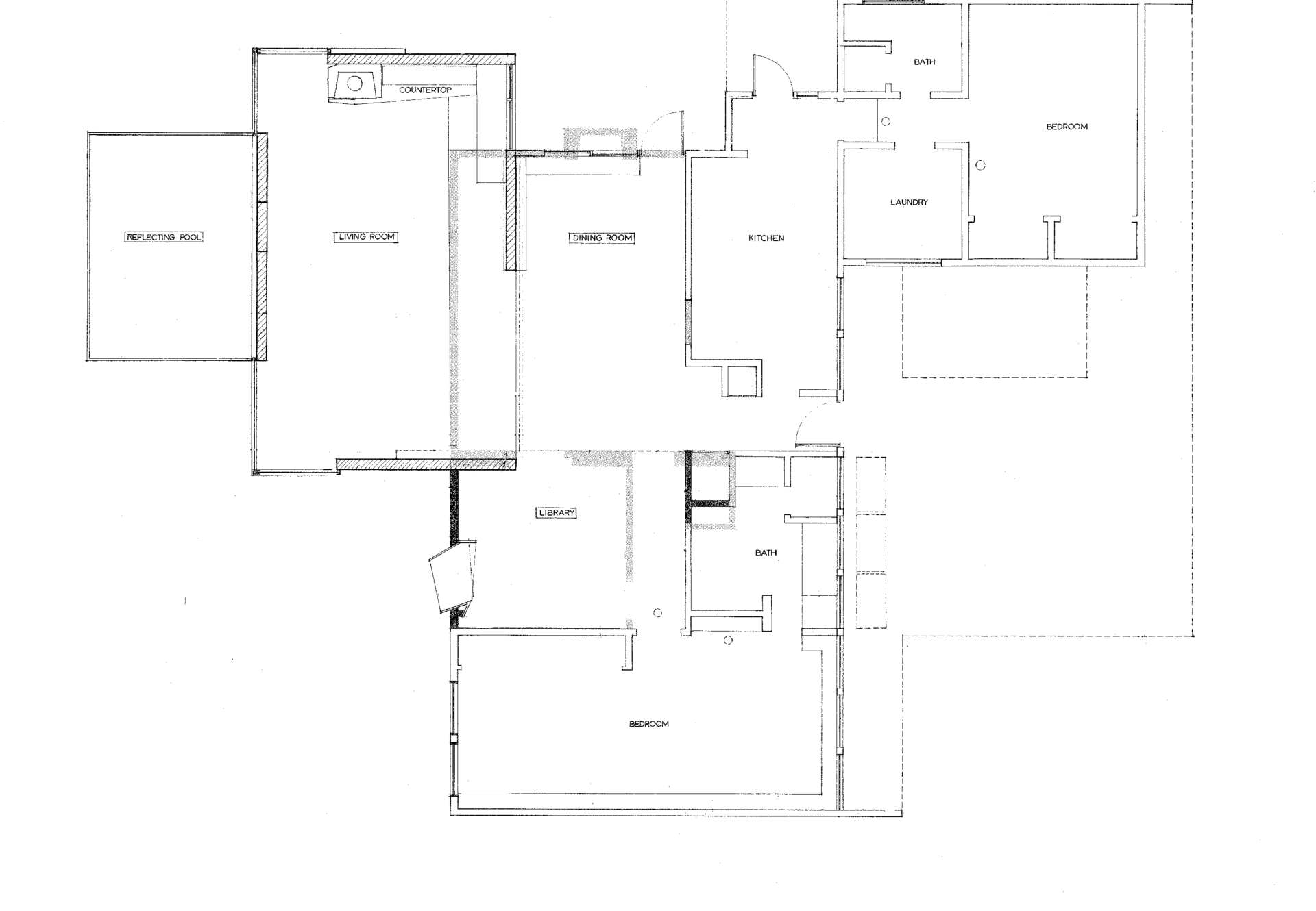Eckbo, in what turned out to be his final professional commission, placed a reflecting pool at the foot of the east-facing wall to cast morning sunlight onto the masonry walls. New patio surfaces extend the interior living areas into the verdant landscape, blurring boundaries between house and garden.